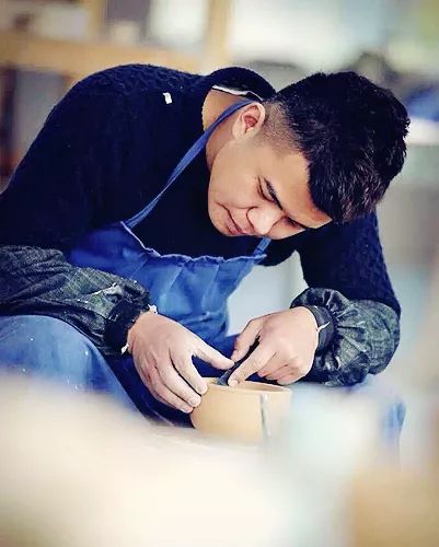 当他携女友徜徉于云南,在苍山,在洱海,被那一泓巨大的蓝吸摄的时候,廖道康就蓦然要把这至纯赋予他的青瓷。这种想法沉淀在廖道康心里很多年。作为新生代的龙泉青瓷匠人,在故乡的泥土上,俯拾来自遥远的宋代瓷片,用瓯江的水冲刷掉斑驳的锈迹,便呈现那深邃而清澄的蓝。