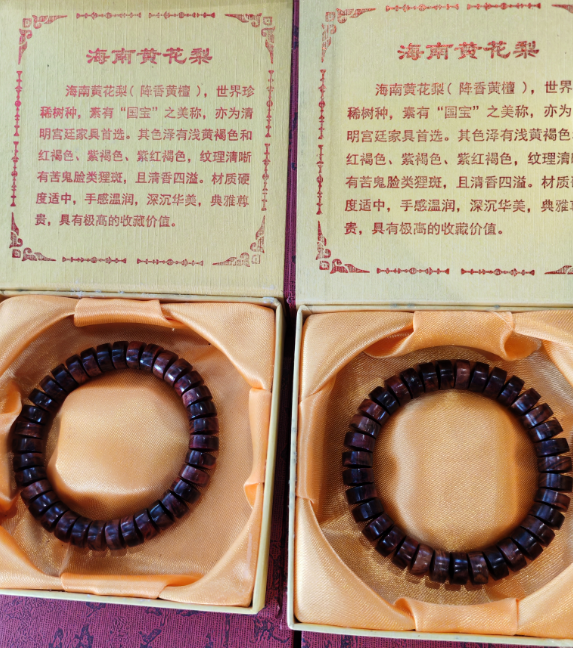 海南黄花梨学名(降真香),世界珍惜树种,素有“国宝”之美称,亦为清明宫廷家具首选,其色泽有浅黄色和红褐色、紫褐色、紫红褐色、纹理清晰,有鬼脸类斑纹,材质硬度适中,手感温润,深沉华美,典雅尊贵,具有极高的收藏价值。