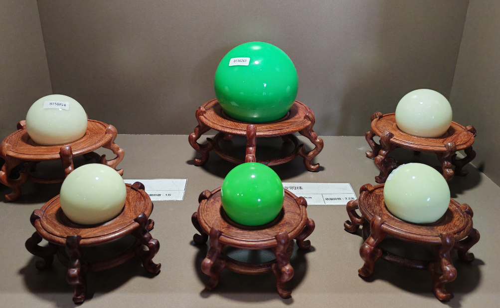 夜明珠古称“随珠”“悬珠”等,主要成分为氟化钙,是萤石的稀有变种。其常有黄绿、浅蓝、橙红等颜色,莫氏硬度约4,密度约3.18g/cm3。