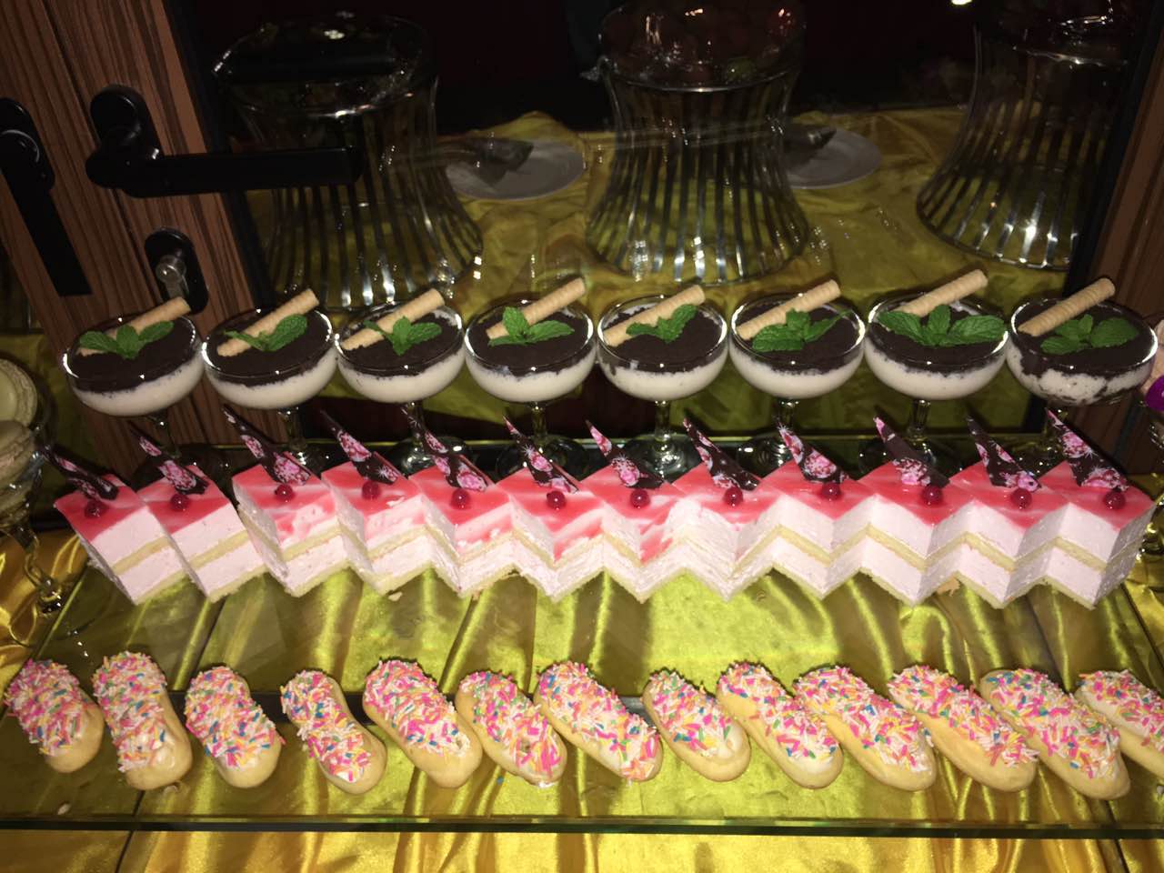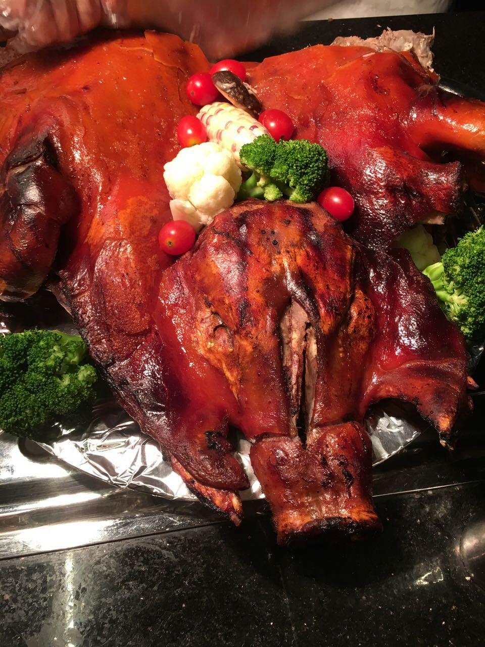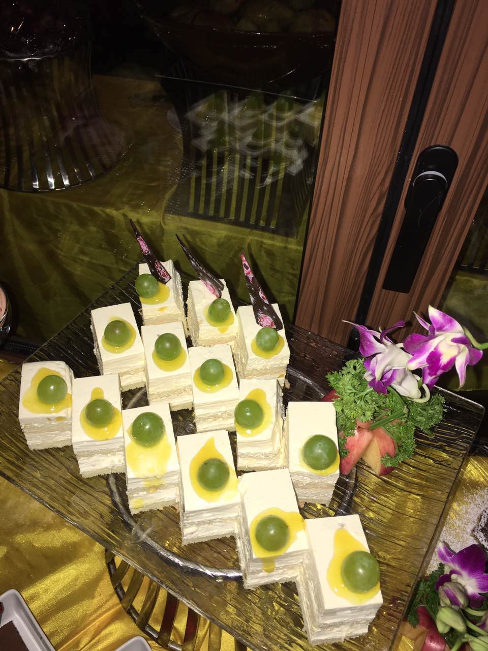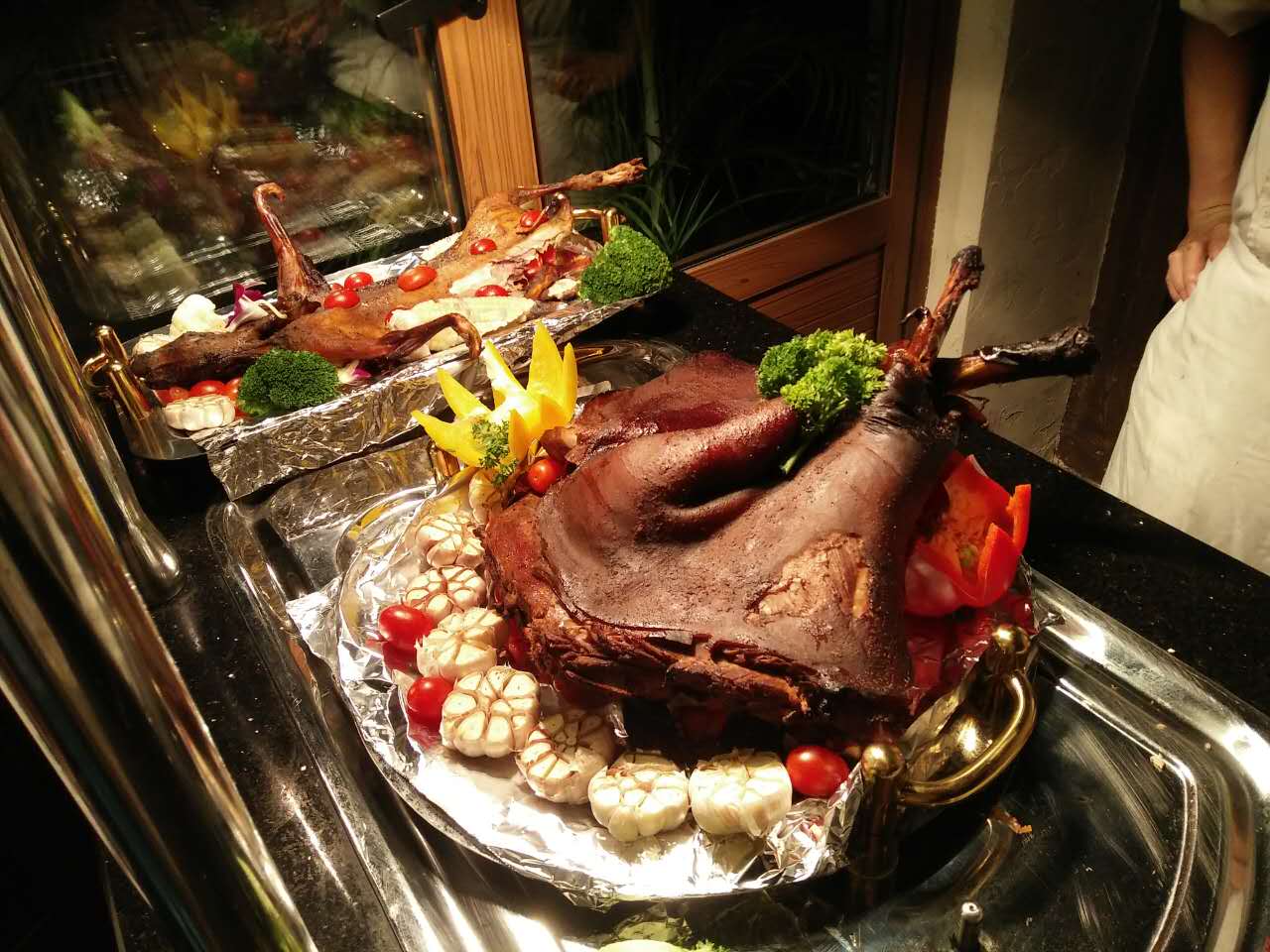 有飘香四溢的烤本地野兔、 烤五脚乳猪、烤东山乳羊;有最受追捧的当地菜式的五指山原味小黄牛、五指山小河鱼、捞叶炒蚂蚁鸡;有当地特色自然也少不了高大上的澳洲香草汁羊排、蘑菇汁美国T骨扒、烟熏三文鱼; 还有甜品爱好者最喜爱的法式马卡龙、核桃派、黑森林蛋糕;西主厨还为本次自助餐制作主题蛋糕。本次自助餐有70多个品种,受到顾客的一致好评,写着写着~小编的口水又流下来了~