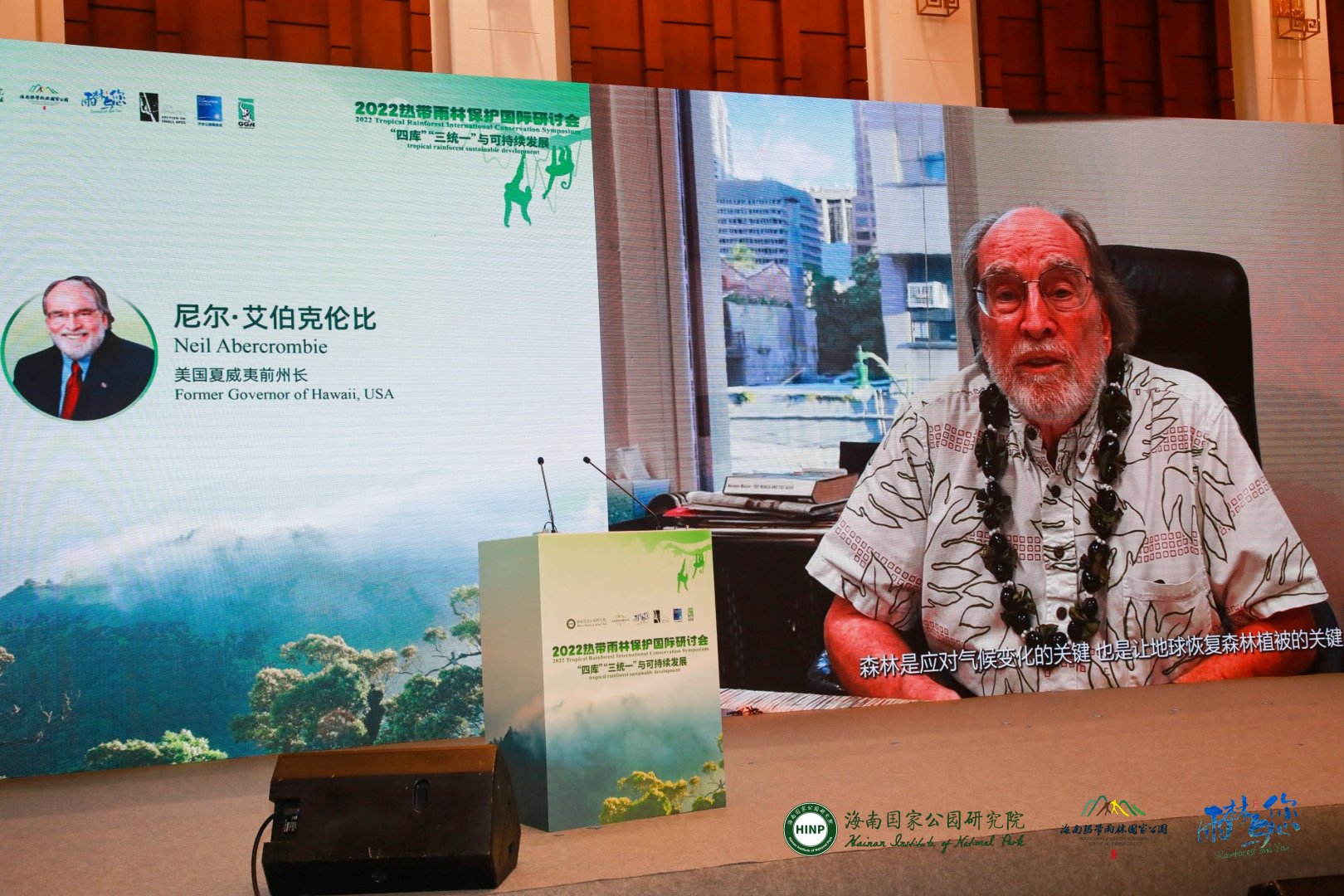 会议邀请了美国夏威夷前州长尼尔·艾伯克伦比,世界自然保护联盟前总裁兼理事会主席、173至177 届联合国教科文组织执行理事会主席章新胜,联合国教科文组织驻华代表夏泽翰,联合国防治荒漠化公约特使埃德加·古铁雷斯·埃斯佩莱塔,世界自然保护联盟亚洲区主任丁多·坎皮兰,国家林业和草原局原总经济师、海南国家公园研究院副理事长张鸿文等国内外嘉宾分别进行了致辞。