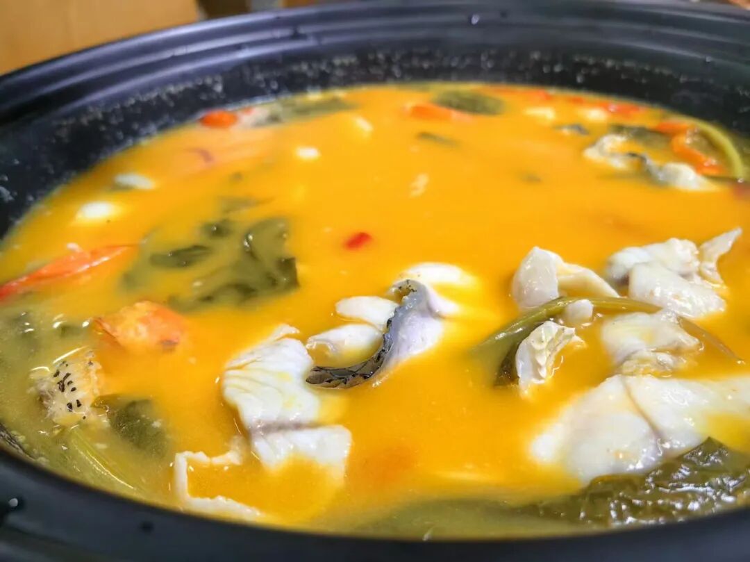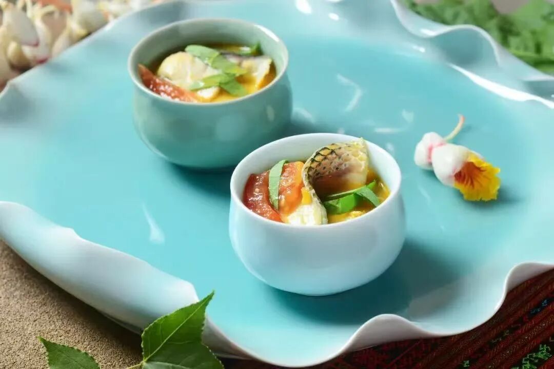 五指山食叶草酸汤鱼是海南五指山地区的特色民族佳肴,体现了当地黎族、苗族等少数民族的饮食文化特色。酸汤酸味柔和醇厚,带有食叶草的天然草本酸香,还融合了小金桔、百香果的酸甜,酸中带甜、回甘而鲜。鱼肉鲜嫩爽滑,充分吸收了酸汤的味道,酸辣开胃,令人回味无穷。